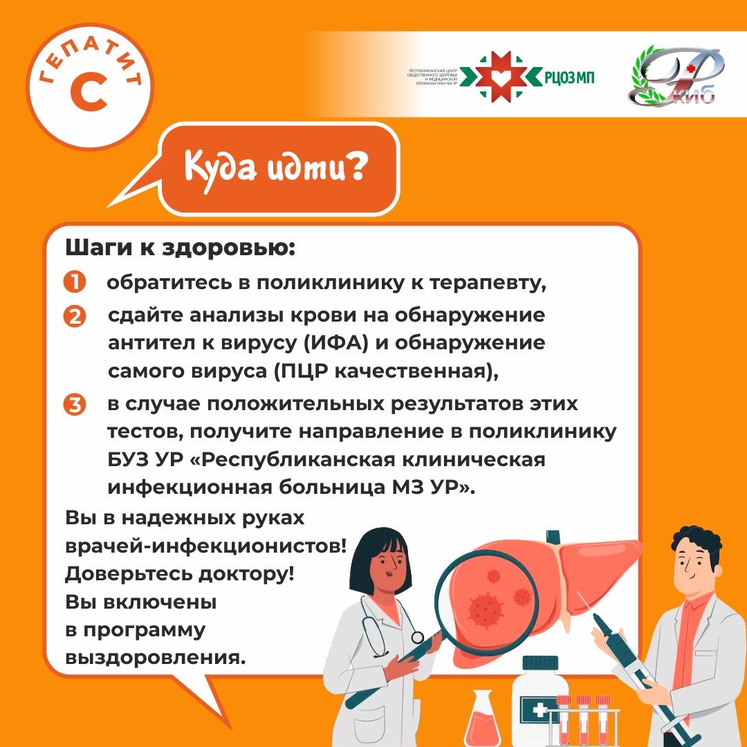 3. в случае положительных результатов этих тестов, получите направление в поликлинику БУЗ УР «Республиканская клиническая инфекционная больница МЗ УР».