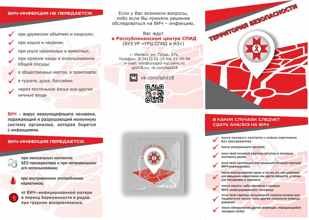 Пройти тестирование на ВИЧ – инфекцию возможно в Удмуртском республиканском центре СПИД, а также в любом его филиале.